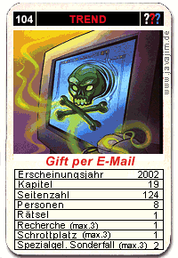 Anders als der Trendtitel vermuten lässt, geht es eigentlich nicht wirklich um Computerviren. Ein kindgerechter Weiterbildungskurs in Sachen Computer bleibt den Lesern damit erspart. Doch an Kreativität mangelt es dem Fall leider nicht. Die drei ??? bekommen einen schmierig-coolen Profi-Versager-Detektiv als Konkurrenten und dichten ihre Rätsel und Botschaften selbst. Tom, ein Computer-Freund, konstruiert aus Spaß ein Baby-Rätsel, dass die drei ??? erst am Ende knacken können. Justus dichtet auch, niveaulose Botschaften nämlich. Zwar ist der Fall recht abwechslungsreich und verzwickt, doch leider passt der Fall viel besser zu TKKG als ins ???-Universum.