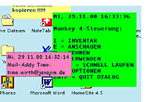 universeller Gedanken-Speicher Die virtuellen Post-its lassen sich nicht nur als Erinnerungsstütze einsetzen, sondern auch als praktischer Schmierzettel. Da die kleinen Fenster in jedem Programm im Vordergrund angezeigt werden, lässt sich darin alles notieren, was man gerade beim Arbeiten an Texten oder Bildern benötigt. Die Zettel lassen sich beliebig verschieben, (bis zu einem bestimmten Zeitpunkt) verstecken sowie platzsparend minimieren. Einziges Manko: Will man die rumschwirrenden Zettel mal nicht in jeder Programmansicht im Blickfeld haben und klickt die Option "im Vordergrund" weg, sind sie auch auf dem Desktop verschwunden. Manchmal verschwinden die Zettel auch von selbst, weshalb man es - seinem Arbeitsspeicher zuliebe - mit dem virtuellen Zettelkleben nicht zu arg treiben sollte. |