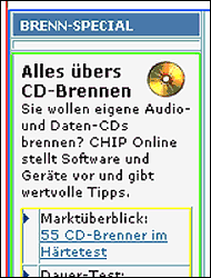 ![]() Unfunktional eingesetzte Vierfach- Verschachtelung bei Chip-Online. Die farbige Markierung (rot, blau, grün, gelb) macht die Verschachtelung deutlich. |
